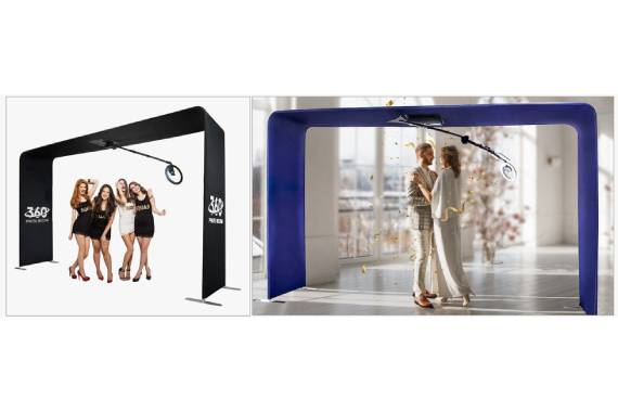 We use an overhead 360 photo booth that has several advantages over a round platform: